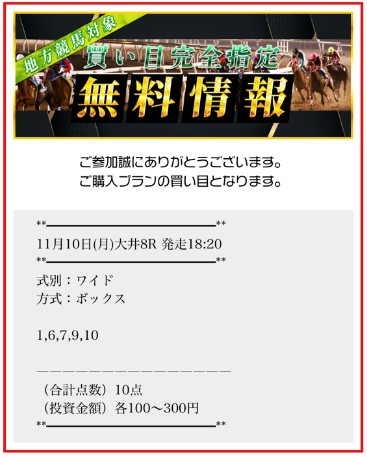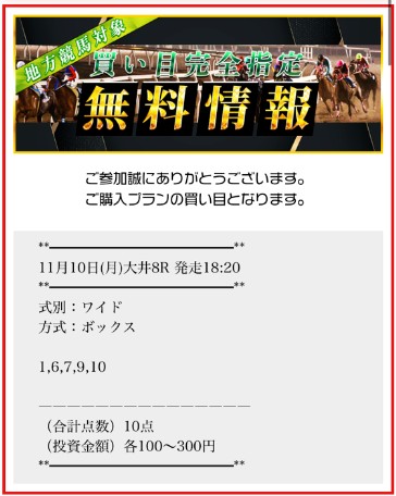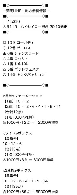 早速ライン友達登録して地方無料予想を14日(金)に手に入れた結果