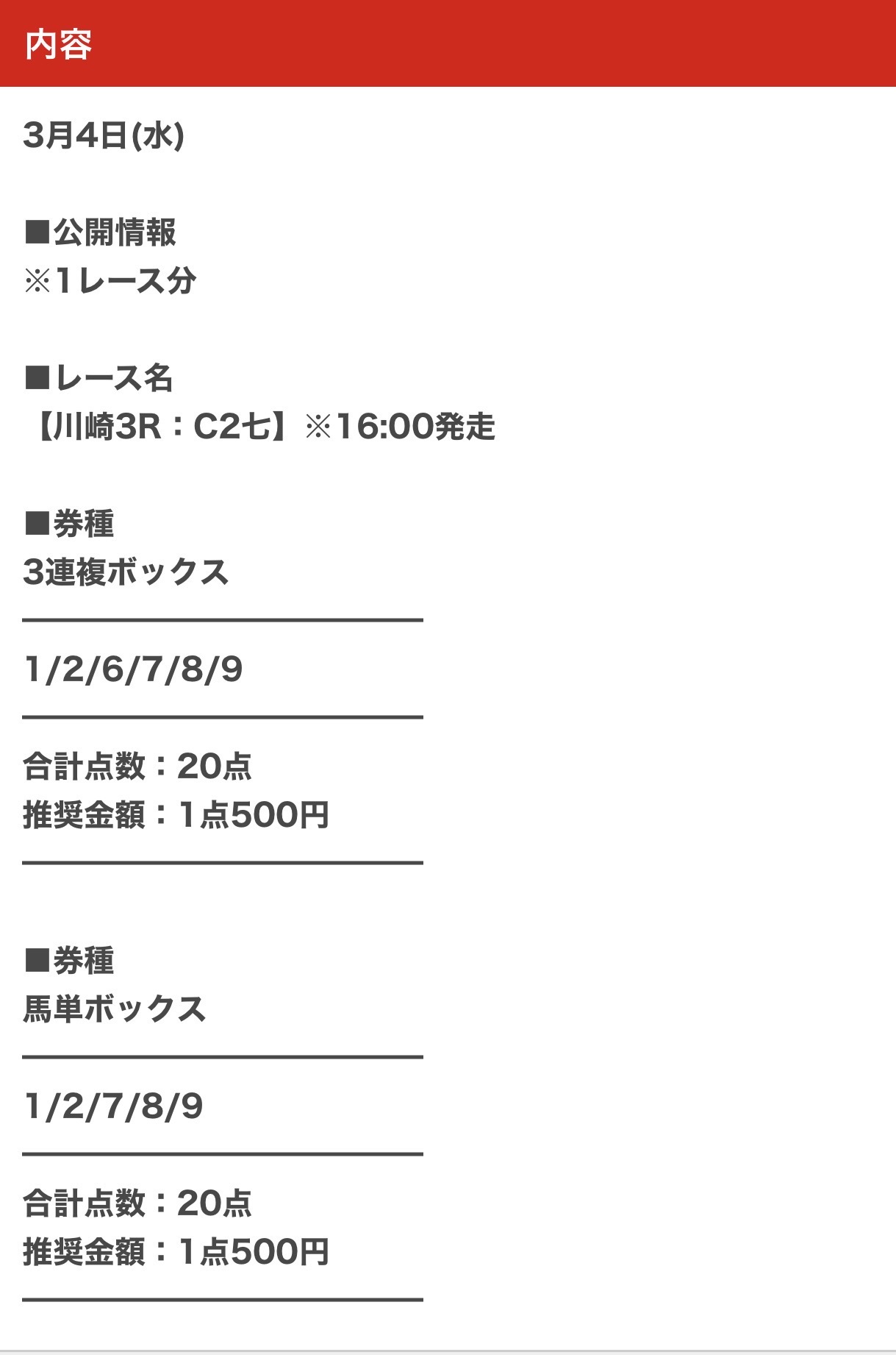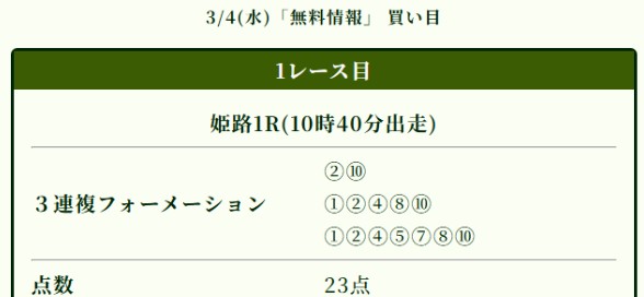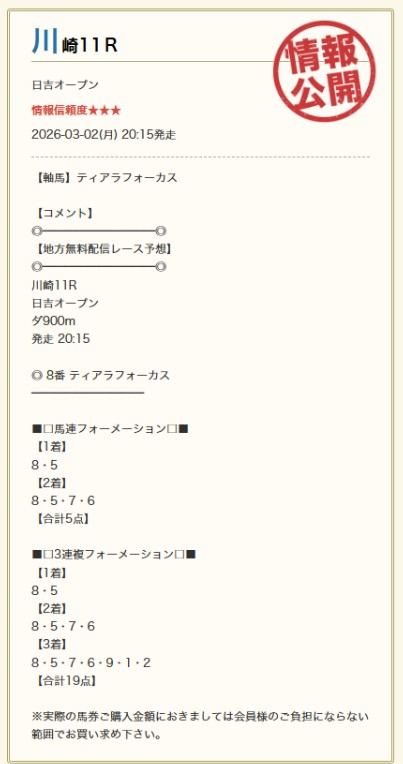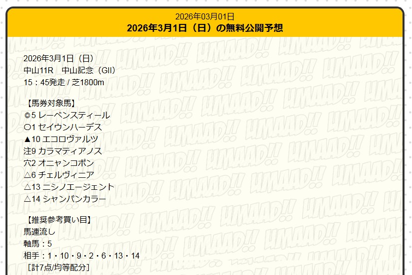 AfW3411さん3月7日(土)の無料予想的中速報
