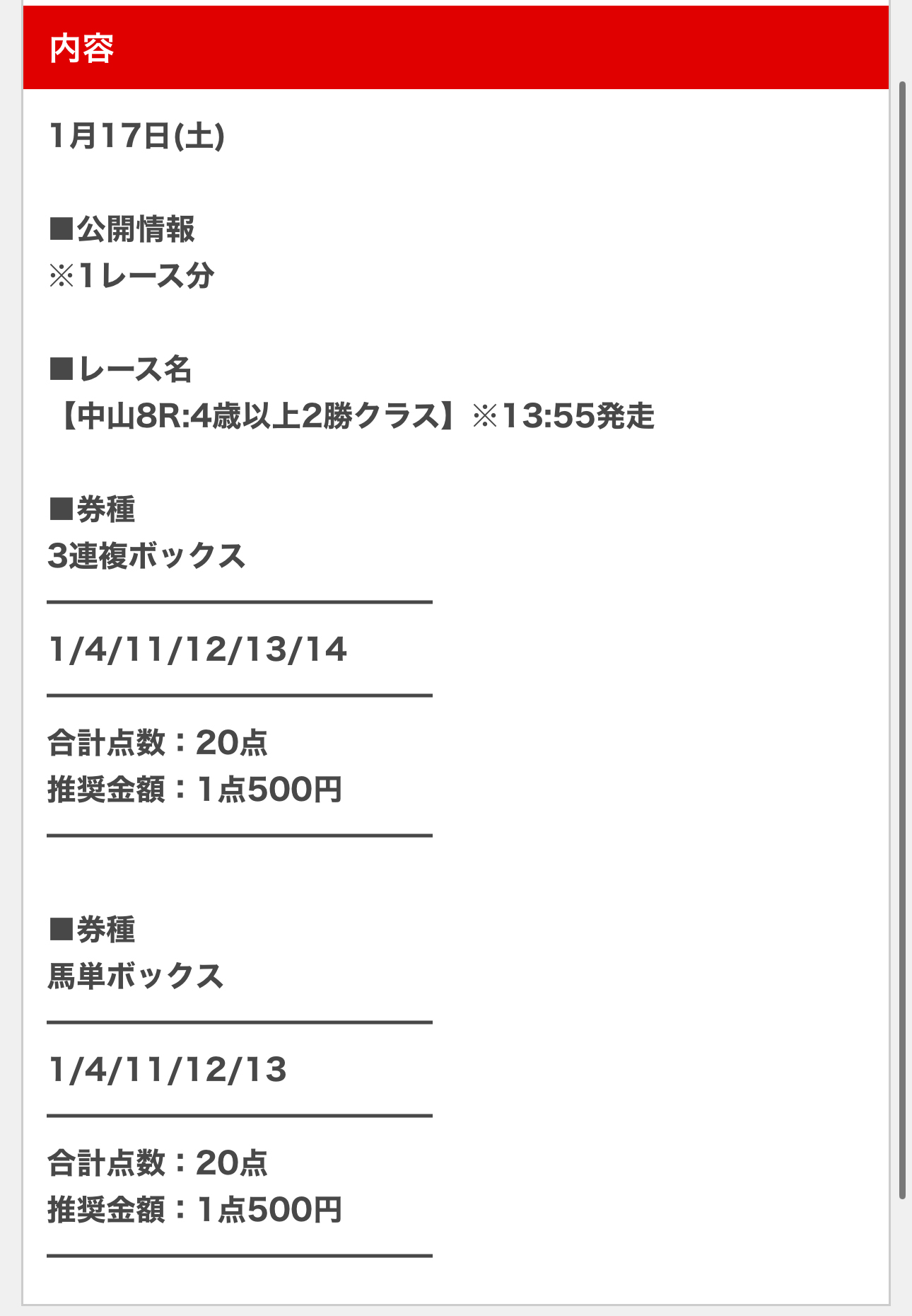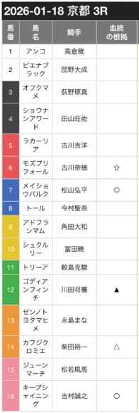 そんなライン予想サイトの老舗が17日(土)の無料予想中山8R