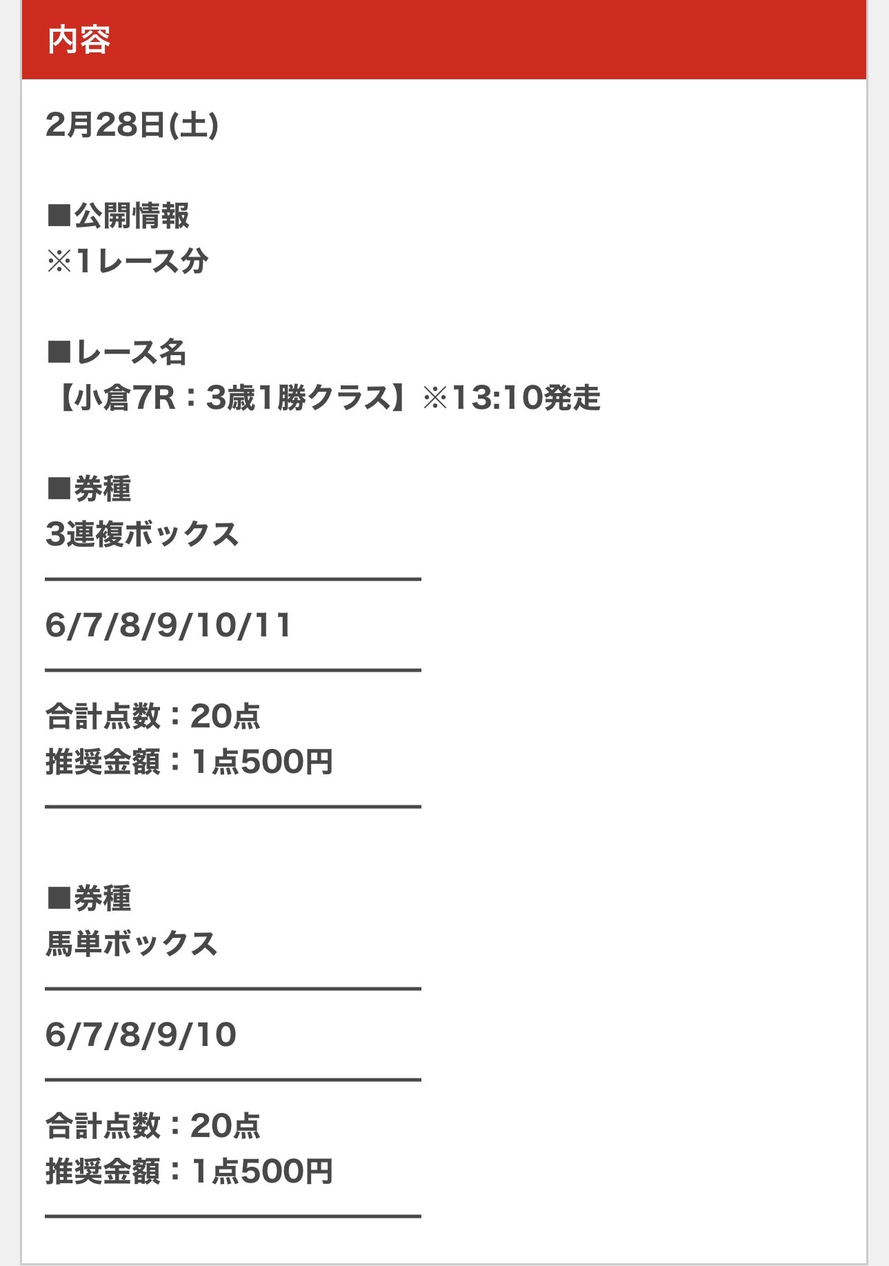 小倉最終レースの三連単の的中を貰いました!