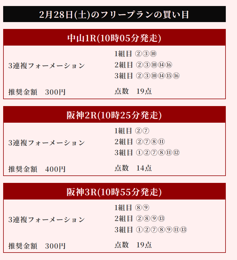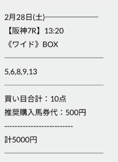OmL2088さん2月28日(土)阪神7Rワイド無料予想的中