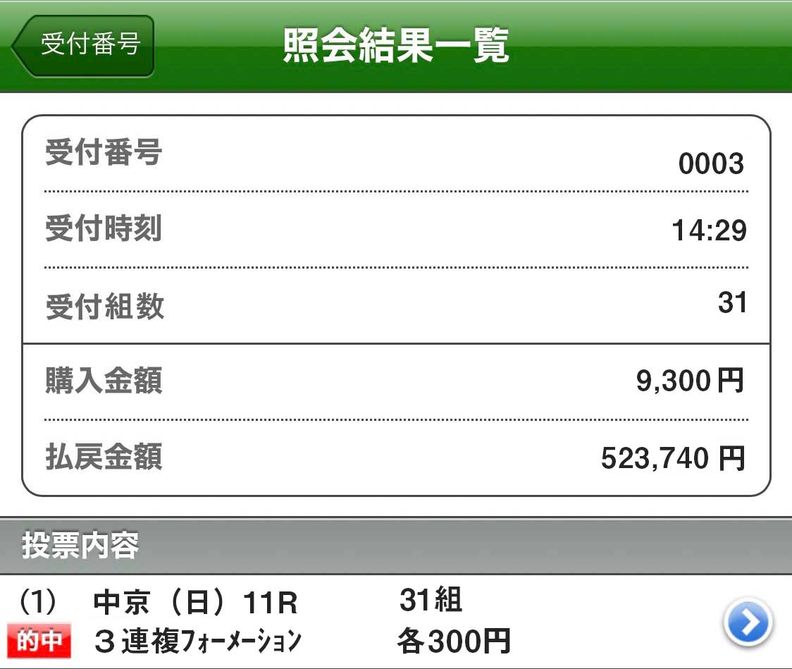 ちょっと背伸びした馬券代を使いましたが