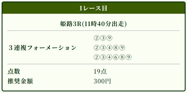 馬券代は奇跡のワンコイン(1点500円)