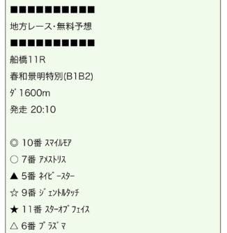 4月3日(金)船橋11Rの無料予想で的中