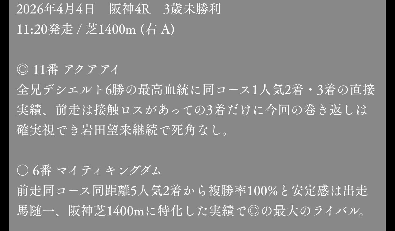 無料予想って、当たっても「はい数千円」で終わることも多いんですけど、これはちゃんとテンション上がるやつでした。