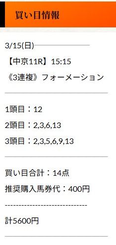15日(日)阪神2R完全的中!