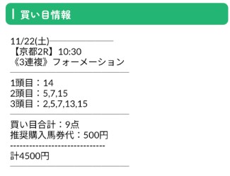 11月22日(土)3連休初日の京都2Rの無料予想で