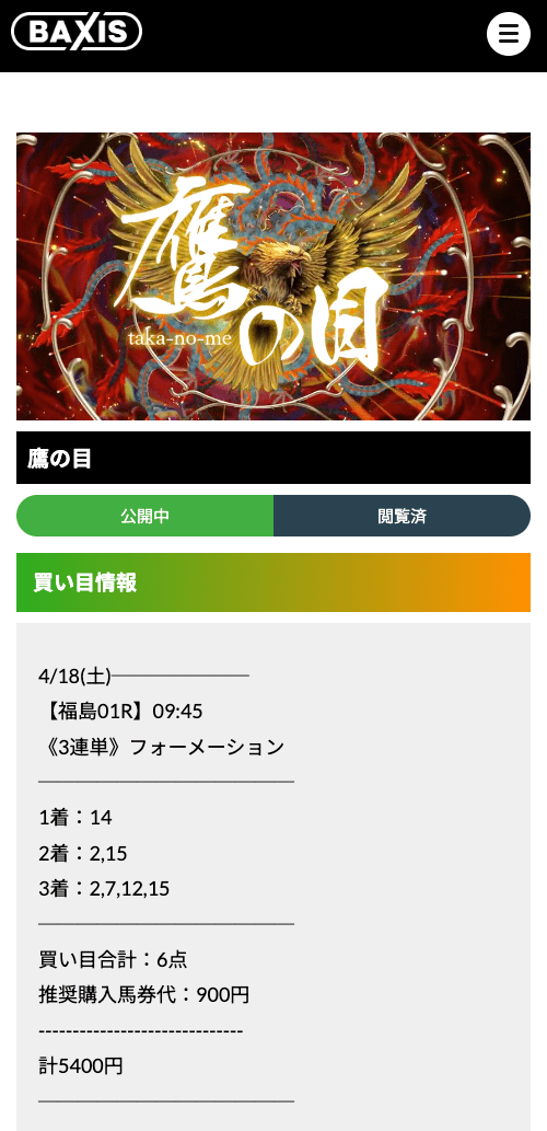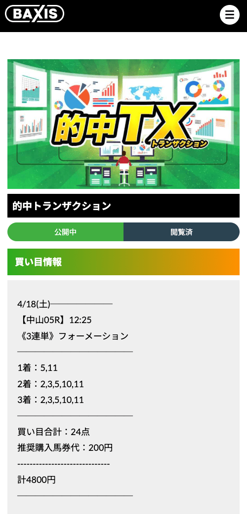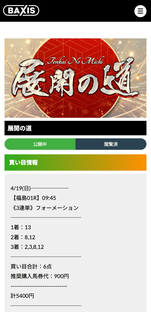 バクシスのワンコイン(500円)馬券の無料予想が