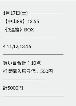 1月17日(土)の無料予想2鞍提供2鞍的中
