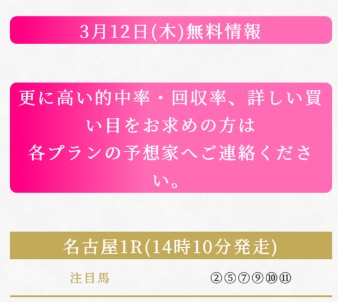 ハーレム競馬の無料予想に3月12日(木)に参加しました!