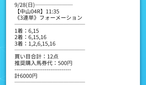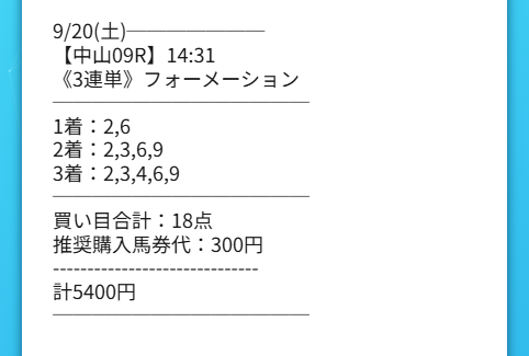 13日(土)中山6Rのワイド買い目点数2点で