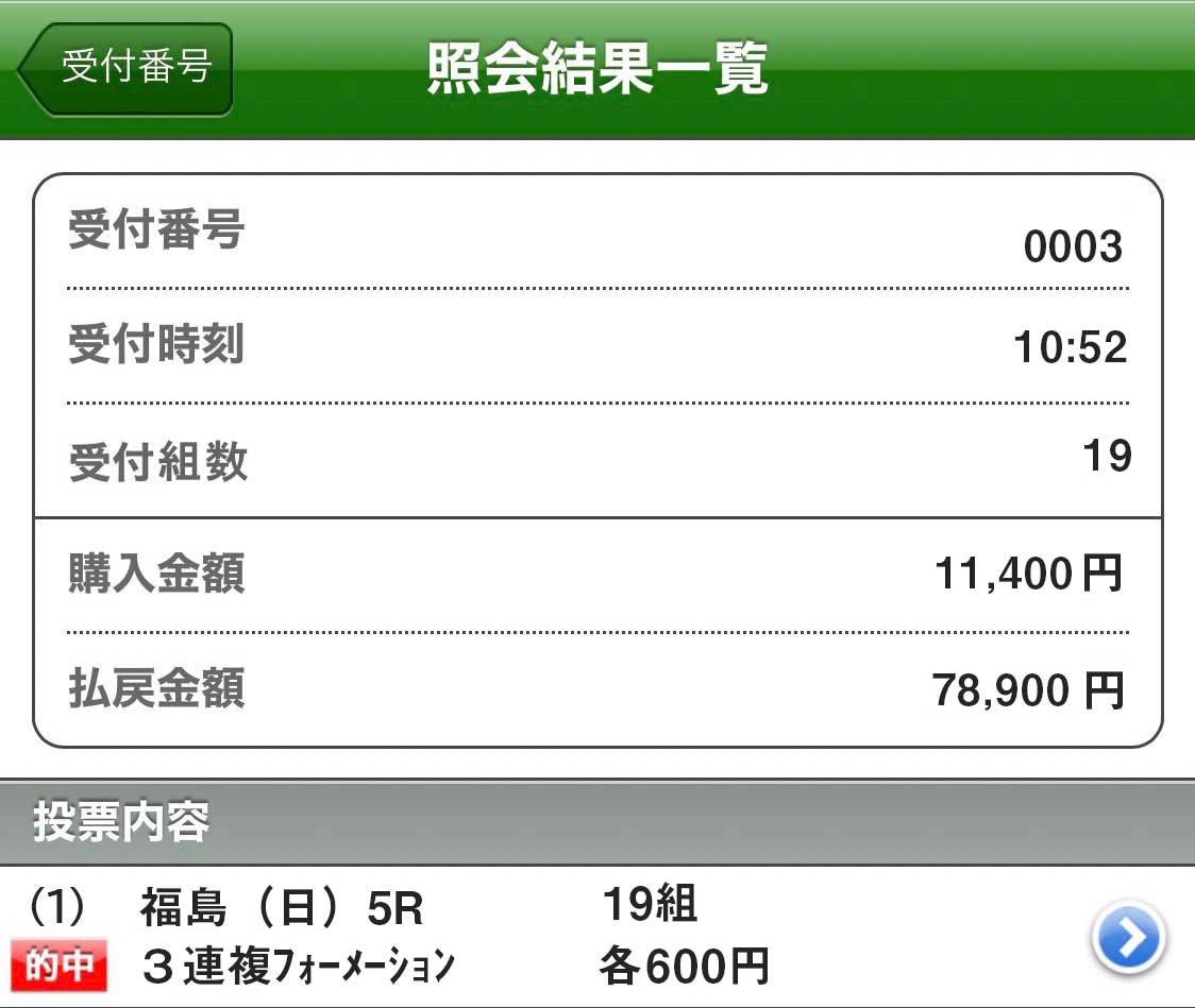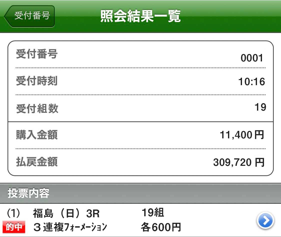 提供された無料予想の買い目通り1点300円で乗って、61,770円になりました。