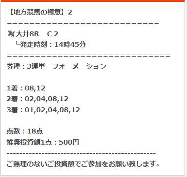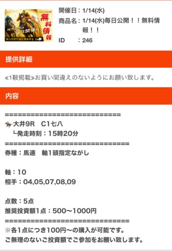 次はこのお金の半分くらいを軍資金に回して高額情報に参加を決意しました!