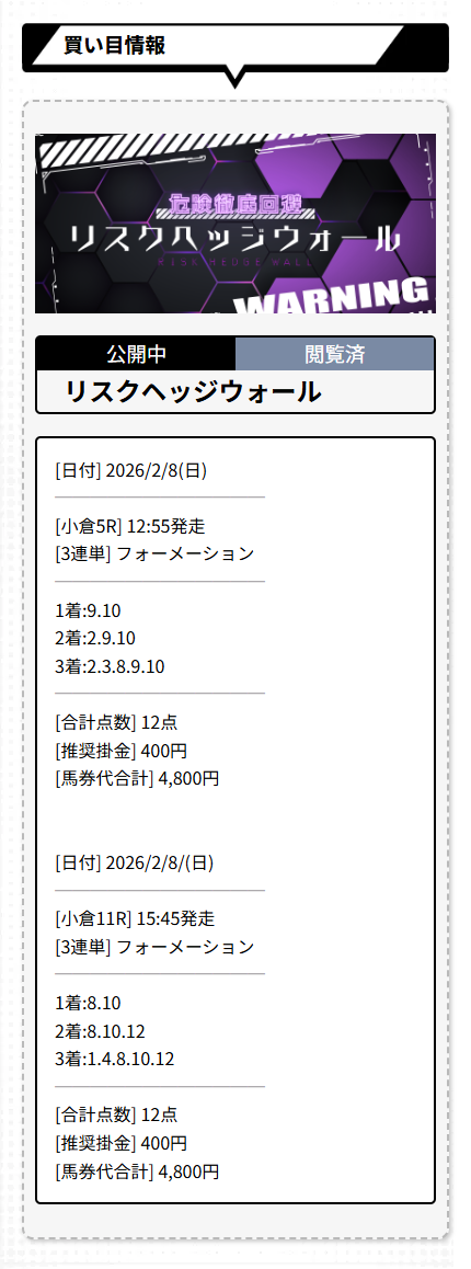 まず2日間で合計4鞍の提供で的中は2鞍