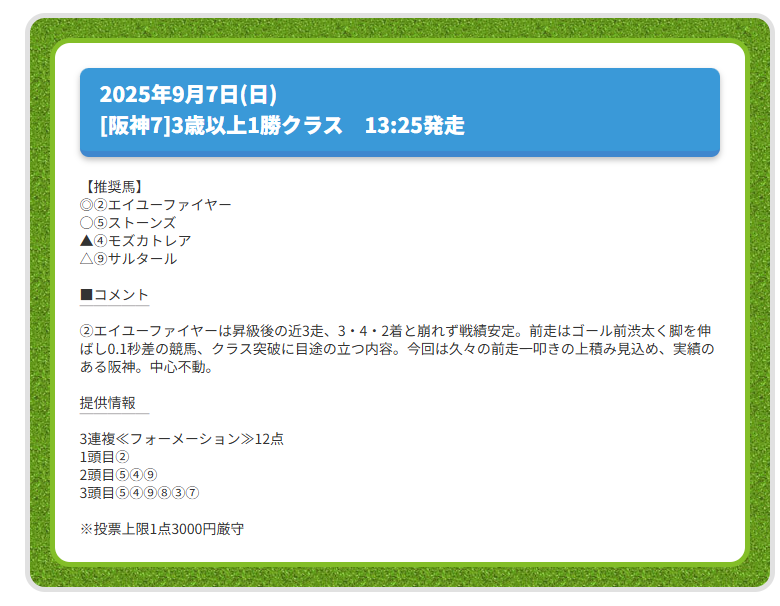 31日(日)も9月もターフビジョンの無料予想に期待しちゃいます!